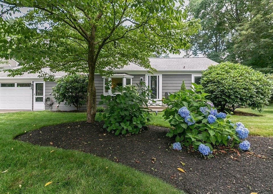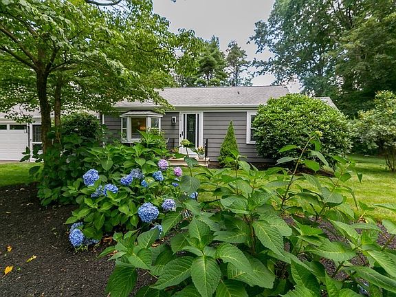 This updated & well-maintained ranch shines throughout! The living room welcomes you in with its bay window, fireplace with detailed mantel above & hardwood floors. The hardwoods carry through the hall & all 3 BRS. Stunning newly renovated white kitchen has gorgeous quartz countertops, subway tile backsplash, new sink, new high-end SS appls, center island, luxury vinyl plank flrs, recess lights & opens to the dining room with custom built-ins, shiplap & slider access to the 10x12 deck, rear yard & garage. Updated bath with wainscoting, tile flr & lovely granite vanity. All 3BRS are generous in size & offer great closet space, hardwoods, ceiling fans, plenty of windows for lots of natural light & the main bedroom is king-sized! All this plus a one-car garage with workspace & storage above sited on a fabulous .64 acre lot with shed, garden area & beautiful landscaping. Updates incl: NEW Hydro Air HVAC system, freshly painted inside & out, new lighting, new kitchen & more! A TRUE GEM!