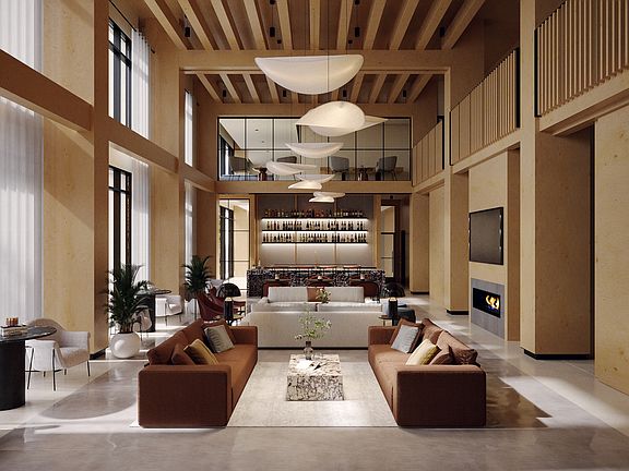 Inside each home, residents enjoy spacious layouts with soaring ceilings, expansive windows for natural light, custom cabinetry, quartz countertops, and walk-in closets. Select residences feature double vanities and lofted ceilings for added comfort and style.