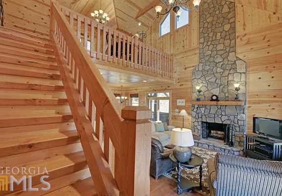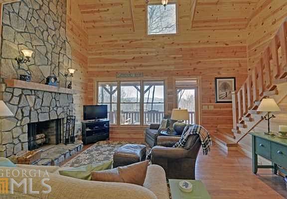 Spacious and Upscale This 4BR/3.5BA Mountain Cabin offers tons of upgrades, including granite counters, stainless appliances, beautiful hardwood floors, massive stone wood-burning fireplace, large loft, rec room with kitchenette in the terrace level and much more! If you enjoy outdoor living, you will appreciate the private 4 acres, a noisy creek, long range mountain view, screened porch with outside fireplace, three levels of covered porches/decks, detached garage & end of the road privacy!