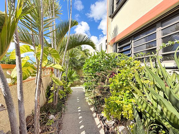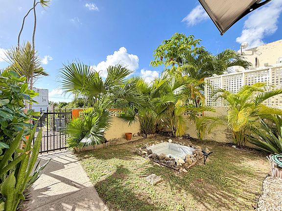 This spacious 4 bedroom 1.5 bathroom house is ready for you to call it HOME! Located at the end of a short cul-de-sac in an established residential neighborhood, it is convenient to shops, restaurants, and services. Built in the townhouse style, it shares a wall with the house next door. It is constructed of poured concrete - even the roof! An easy manual switch transfers the water from cistern to city as needed. An electric gate with clicker makes pulling into the driveway easy. The owner has made so many improvements, including a recent roof resealing, mini split ACs in the bedrooms, several new appliances, new wall sconces, a solar powered fountain in the entry garden, and much more. See the Documents section for a detailed list of the improvements.SOLD AS IS WHERE IS.