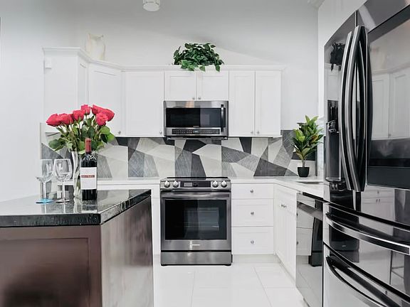 Screened poolPotential primary suitesBright neutral paletteModern kitchenCrisp tile floorsGenerous patioRefreshed baths