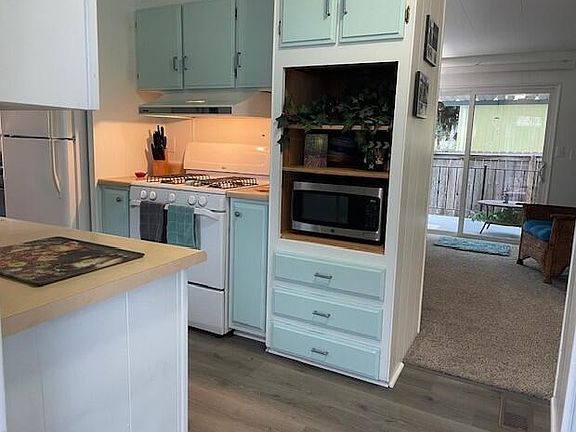 This charming, newly updated 2-bedroom, 1-bath manufactured home, built in 1972, is located in the desirable Blue Spruce Mobile Estates 55+ park. Just minutes from Medford and close to Jacksonville, it offers a peaceful country feel. From the carport, you enter through the laundry area. The kitchen features fresh paint, a new portable dishwasher, new flooring, and plenty of cupboards. The dining room includes a built-in hutch and a large window, while the spacious living room has a cozy sitting area with a large slider leading to the covered deck. The remodeled bathroom boasts a new shower, paint, flooring, and shelving. Recent updates include a new electrical panel, a new roof in 2020, and a new min split heat/air 2023. The low-maintenance lot offers a carport with storage shed, garden shed, partial fencing, and newly graveled extra parking. Move-in ready! Space rent is approximately $575 per month. New bathroom door (cute barn style) being installed 12/3/25.
