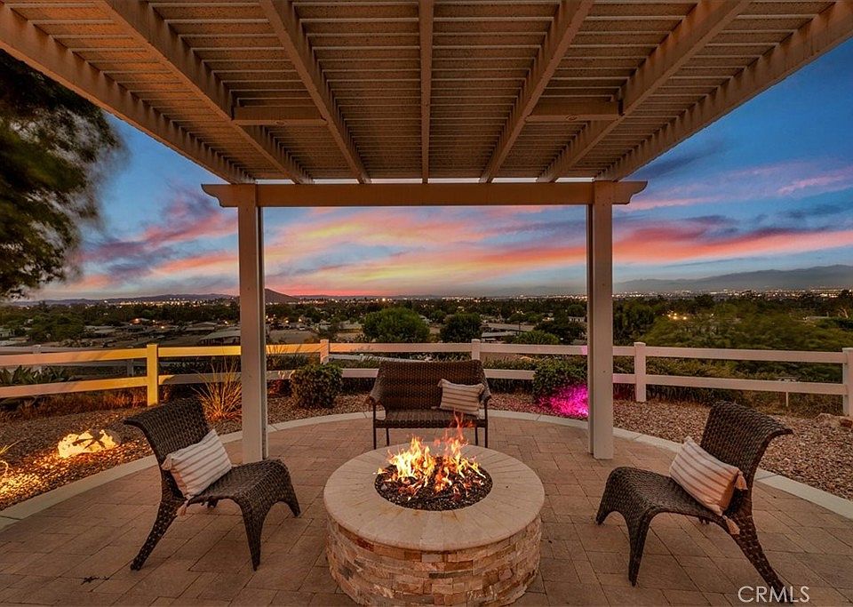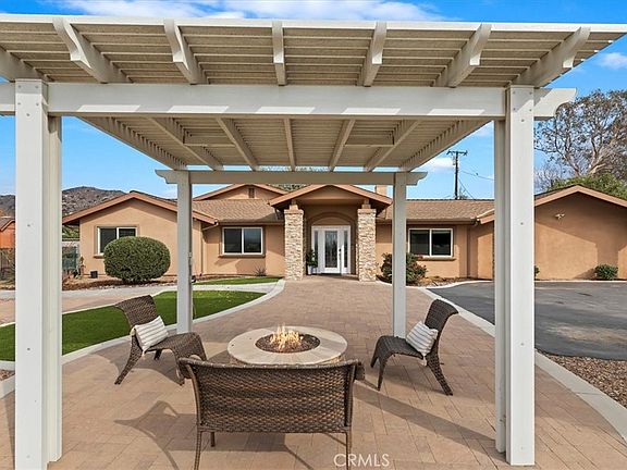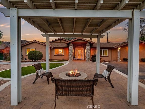 SPECTACULAR VIEW HOME & HORSE PROPERTY on 1.72 Acres! Do you want a PANORAMIC VIEW with morning SUNRISES and nightly SUNSETS? This one has it. This gorgeous home overlooks the entire Norco Valley. The back of the property has views of the Pumpkin Rock hiking trail and Ingalls Equestrian Center where we hold rodeos, fairs and all sorts of fun community events. Sit back in the front yard and enjoy your morning coffee or evening drink, relaxing and enjoying the views and the firepit watching DAILY SUNRISES and NIGHTLY SUNSETS. 32 PAID-OFF solar panels to help keep your electricity bill low. This home has curb-appeal and charm as soon as you drive up, you will gaze at the view and enjoy the nice breeze on top of this hilltop home. This home has wonderful features such as the formal dining room (or use as a living room) where you can serve your guests and enjoy gazing from the large window with the sunrise and sunset views. The kitchen has been remodeled and replaced with stainless steel appliances, newer cabinets and a kitchen island overlooking your family room. The stove/oven is a convection oven and self cleaning oven. The living room has high ceilings and the entire house has recessed lighting through-out. The primary bedroom has a large sitting area or could also be used as an office or nursery. The oversized walk in closet has built-in shelving you will fall in love with. The primary bathroom has a jetted soaking tub, perfect to relax after a long days work. Huge walk in shower and separate double vanities. The seller has replaced all plumbing with copper plumbing. The main house features 2,236 sqft of living space with a 260 sqft enclosed patio. The garage/storage area is approximately 704 sqft and would be a perfect space to add a Junior Suite/ADU. The exterior has a cute river rock water fall to listen to & relax by. There are 6 chicken coops ready for you to raise your own chicken farm. There are multiple areas where you can have all your other animals such as horse, goats, cows and anything you wished you could own. There are multiple sheds for feed storage and personal storage that are included. Raised flowerbeds perfect for you to grow all your own fruits and vegetables. There is a drip system to the plants and planters. You will own this beautiful home and the whole hill and be secluded from neighbors with peace. The long drive way up adds for a lot of privacy. This is a one of a kind property you must have!