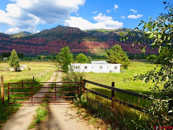 Location, Location! Wonderful 2-acre horse property with water rights, perfectly situated in the north Animas Valley. Enjoy stunning red cliff views, a level building site, and a large pasture—all less than 5 miles from Downtown Durango. Includes two shares of the Animas Consolidated Ditch for irrigation (over 80,000 gallons of water daily) and on-site pond for added water storage The large barn has two spacious stalls, large aisle, tack room, workshop, large loft for hay storage, and spacious drive-through three car garage. There are fenced corrals and over 1.5 acres of grass pasture. No HOA or covenants, offering exceptional flexibility and opportunity The property also includes a well-maintained 2 bed/2 bath single-wide (not on a permanent foundation, title not purged). While given minimal to no value, it is fully livable—perfect as a temporary residence while you build, or turn-key as a rental for extra income. Interior features include a laundry room, two en-suites, abundant natural light, a large outdoor deck, and a 300 SF attached entry/workshop. This unique property can serve as productive agricultural land or an exquisite home site in one of Durango’s most desirable locations. Move-in ready and priced to sell quickly—call today to schedule your showing!