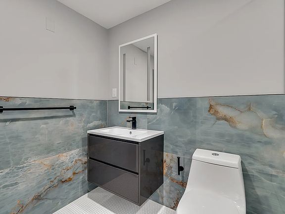 The bathroom features striking marble tiles and a glass-enclosed shower, creating a spa-like retreat that blends luxury with modern design. Every detail has been crafted for both style and comfort, offering a home that feels both sophisticated and inviting.