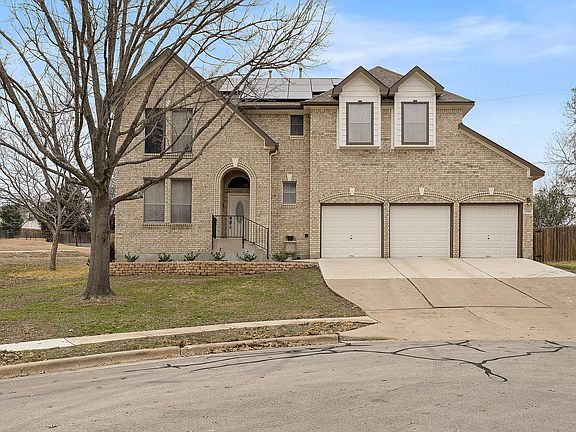 Open House, 2/14 from 10am to 12noon! Welcome to 3700 Hawk Ridge St. — a spacious and updated two-story home nestled in the established Round Rock neighborhood of Eagle Ridge. This spacious home offers an updated, open layout with SIX bedrooms, three and a half bathrooms, and flexible living spaces, all within Round Rock ISD schools. This home’s cul-de-bubble location, with GREEN SPACE on two sides, enhances the sense of openness and provides a private, expansive feel to the lot. The spacious living space is filled with natural light from seven massive windows surrounding the area. The living room features a cozy gas/wood burning fireplace, serving as a warm and inviting focal point. The kitchen, refreshed in 2021, features freshly painted gray cabinetry, updated backsplash, Silestone countertops, black hardware, and connects to the dreamy breakfast nook. The home includes a single story primary suite, and 5 additional carpeted bedrooms on the second level providing room to grow. The primary suite features a well-appointed en suite bathroom with a dual-sink vanity, walk-in shower, and updated finishes. An additional large bonus room upstairs offers space for a homeschool room, playroom, or guest retreat. That's right....PLENTY of room for everyone here! Outside, the backyard and enlarged stamped concrete patio provide room to gather, play, and entertain. A three-car garage adds storage and flexibility, while 2025 exterior repaint give peace of mind. SOLAR PANELS, paid off at closing and solar screens on some of the windows provide energy efficiency. With easy access to I-35, nearby shopping, dining, and entertainment, this home blends versatile living spaces, and a prime location for family living.