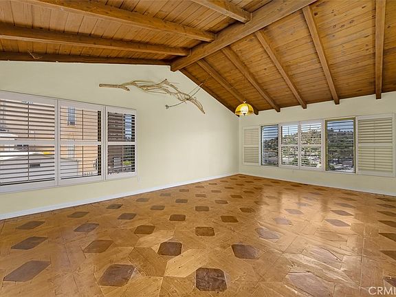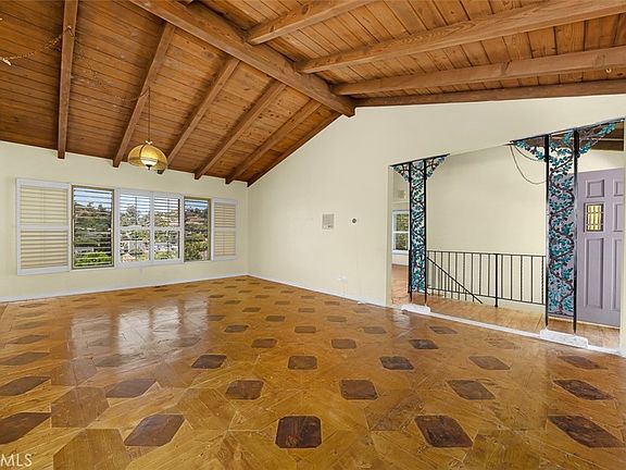 Nestled on a .4-acre hillside, this custom 1968 home offers a serene and private retreat with panoramic views. Featuring intricately detailed wood flooring, high vaulted beamed ceilings, the great floorplan includes 3 bedrooms plus a den (or 4th bedroom). The walk-out basement features a laundry room and a spacious 11 x 22 storage shop area. Tucked away below Helix Street amidst a park-like setting reminiscent of a bygone era, this property includes the historic 1890 "Olla" — the original cistern of the Helix Farms spring, after which Spring Valley is named.