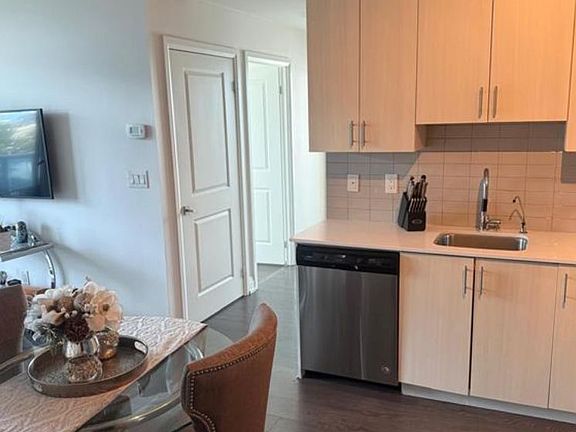 Welcome to Suite 502 at 3700 Highway 7 , a bright and stylish 2-bedroom, 2-bathroom condo offering the perfect blend of modern comfort and unbeatable location. Situated in one of Vaughans most sought-after communities, this well-maintained unit features a functional open-concept layout ideal for professionals, couples, or small families looking for convenient urban living.Step into a sleek and modern kitchen equipped with stainless steel appliances, beautiful countertops, backsplash and lots of cabinetry. The spacious living and dining area is filled with natural light from the large window. The balcony is the perfect spot to enjoy your morning coffee or evening breeze.Both bedrooms are generously sized with large windows and closet space. The primary bedroom includes a full ensuite bathroom, offering comfort and privacy. The second bathroom is equally well-appointed with contemporary finishes. Enjoy 9-foot ceilings throughout, quality flooring, and a fresh, neutral décor that makes the unit feel warm and inviting.A rare extra-large locker is included, offering exceptional storage thats hard to find in most condos. The unit also comes with one underground parking spot.The building is packed with premium amenities including a 24-hour concierge, indoor pool, full fitness centre with yoga studio, golf simulator, party room, rooftop terrace, and more.Live steps from everything you need . TTC subway, Viva transit, Costco, Cineplex, restaurants, Nations grocery, and big-box retail . all within walking distance. With quick access to Highways 400, 407, and 7, commuting around the GTA is a breeze.Don't miss this opportunity to own a clean, move-in-ready condo in a vibrant and connected community.