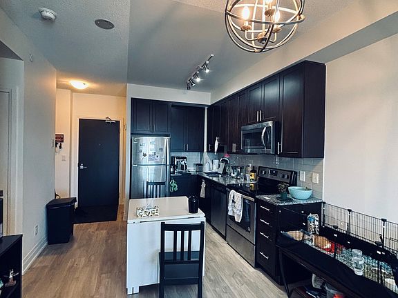 Welcome to Centro Condos! Convenience at its finest! All shopping is right out your front door! Movie theatre, restaurants, transportation, grocery anything you need, is a step away! Spacious open-concept layout: kitchen, dining, living flow together. Ideal for entertaining or for a more airy feel. Big windows letting in natural light, especially since its south-facing. Expect bright mornings & sunny afternoons. Stylish finishes: laminate floors throughout, modern cabinetry, granite counters in the kitchen with stainless steel appliances. Bedroom sized well enough for a queen bed plus room left over, with a semi walk-in closet and large window. One modern bathroom with tile around shower/tub, completed with upgraded fixtures. South facing balcony excellent light, and pleasant views of cityscape and greenery. Ensuite washer and dryer with underground parking! Amenities / Building Features24-hour concierge / security, Fitness Centre / gym, Indoor pool, plus a hot tub, sauna, steam room. Multi-purpose / party room for hosting guests, Outdoor terrace/rooftop space, with BBQs and lounge seating. Virtual golf, virtual simulators, games rooms, media rooms, Visitor parking / guest suites, Locker storage (underground), Underground parking for your car. Close proximity to transit (Bus / VRT / Viva / TTC extensions), shops, groceries, restaurants.