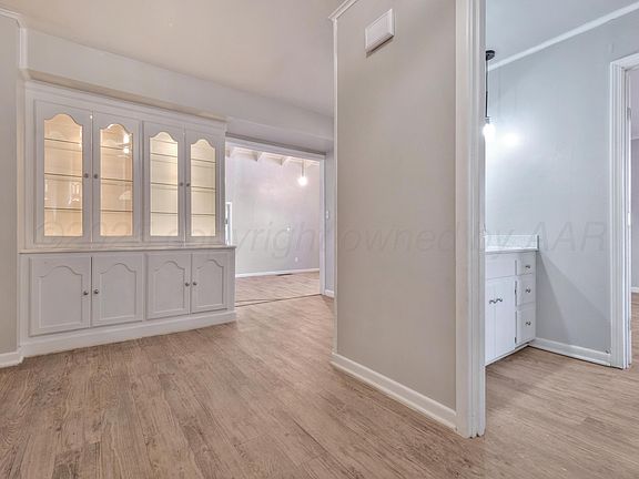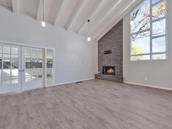 Motivated seller —> all offers will be considered! This striking corner-lot home blends modern updates with timeless charm. Inside, soaring vaulted ceilings and a statement fireplace set the tone for open, inviting living spaces. The layout flows seamlessly from the living and dining areas into a bright sunroom through French doors, where rows of built-in cabinetry offer excellent storage and versatility. Natural light fills every corner of this home. Outside, enjoy a wide driveway, mature trees, a covered front porch, and a private backyard with a storage shed that stays. Don't miss your chance to own this one-of-a-kind property in one of Amarillo's most established neighborhoods.