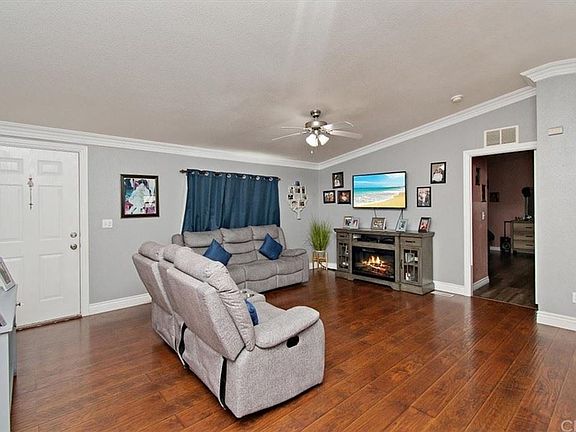 You won't be disappointed when you enter this absolutely beautiful home. Light bright and inviting. Beautiful coffered ceilings that accent the spacious living room and kitchen. The kitchen will please the best of gourmet chefs and features newer beautiful custom quartz like counter tops, newer awesome sink, garbage disposal and an abundance of beautiful white cabinetry. The spacious dining area, perfect for those holiday dinners, includes a beautiful custom center island. There are 3 spacious bedrooms,. The oversized master bedroom has a generous size walk in closet, Air Conditioning, the list goes on!. The long front porch leads to a rear very large patio, perfect for family gatherings. Along with the ability to park two cars, there is a walk-in storage shed. This is not a home you will want to miss and best of all the location near the 60 and 15 freeways