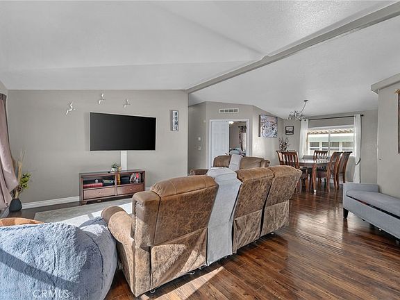 Welcome home! This beautiful home is located in the highly desirable all-ages Santiago Estates park of Riverside/Jurupa Valley. Features 3 spacious bedrooms, 2 bathrooms plus an office! This immaculate home includes a spacious modern kitchen, indoor laundry room and covered carport to accommodate 2 vehicles. Open floor plan with inspiring views from the living room. One of the best locations in the park with neighbors only on one side while the other has a pleasant grass lawn adjacent to fenced patio.