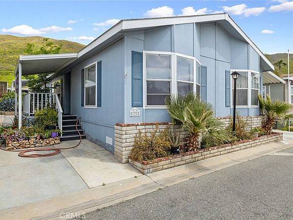 This alluring mobile home located in the beautiful Casitas Santiago community boasts a perfect blend of modern updates along with some key community amenities for all to enjoy. Inside the home, you'll find a spacious 3 bedroom, 2 bath layout with beautiful updated floors and kitchen countertops. Equipped with Central A/C and Heating, a Laundry Room, a cozy Fireplace, Storage/Utility Shed, and an attached Carport with room for 2 -3 vehicles... this home is ready for you to make your own. Community features include a community pool, neighborhood playground, and basketball courts just outside your door. Don't miss this great opportunity.