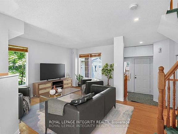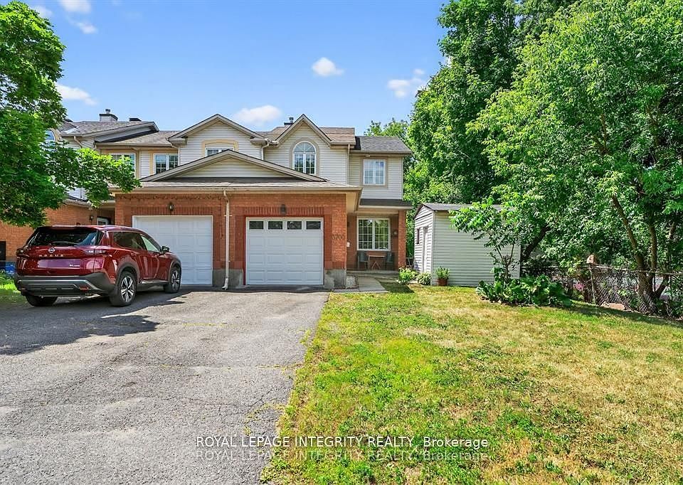 Welcome to 3700 Rivergate Way, a bright & spacious end-unit freehold townhome tucked away in the very secluded and popular Quinterra community! With no front or side neighbors, this beautifully maintained 3 bedroom, 3 bathroom home offers rare privacy while keeping you steps from scenic trails leading to Mooney's Bay and the Ottawa River. Step inside to a sun filled, open concept layout featuring gleaming hardwood floors and a freshly updated interior with modern paint, stylish pot lights, upgraded hardware, and chic new light fixtures (2024). The contemporary kitchen shines with stainless steel appliances, refreshed backsplash and hardware, plus a brand new dishwasher (2025).Upstairs, find three generous bedrooms, including a comfortable primary retreat, along with two refreshed bathrooms complete with new toilets and lighting. The fully finished lower level offers even more living space with laminate flooring over subfloor panels, a cozy gas fireplace with mantle, an updated full bathroom with newer shower tile, and abundant storage. Step outside to your private, fenced backyard oasis, featuring a two-tier deck, built in BBQ with commercial grade rotisserie, and plenty of space for entertaining. Bonus features include a powered front shed (perfect workshop), backyard portable shed, Weiser keypad lock (2024), and an owned hot water tank. Major updates include roof (approx. 6 years old) with furnace and A/C fully serviced in 2024.Perfectly located close to parks, shopping, dining (Vittoria Trattoria just steps away!), transit, and more, this rare end-unit combines tranquility with city convenience. A true gem in one of Ottawa's most desirable hidden neighborhoods!