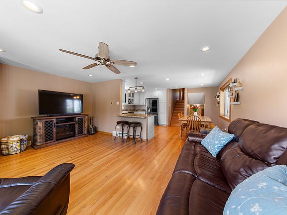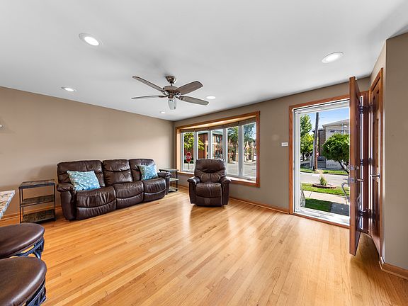 Beautiful Corner Lot | Solid Brick Tri-Level Home in Bridgeport --  4 Beds | 2 Baths | 3 Finished Levels | Built 1972 -- Fall in love with this meticulously maintained, move-in ready brick tri-level located on a beautiful tree-lined street in the heart of Bridgeport! Nestled on a spacious corner lot, this home combines timeless charm with modern updates and thoughtful design throughout. Step inside to find a bright, open-concept main level with a side-entry layout that maximizes space and natural light. The sun-filled living room boasts a large bay window, gleaming hardwood floors, and recessed lighting, creating the perfect setting for relaxing or entertaining. The updated eat-in kitchen is a chef's dream, featuring extra-thick granite countertops, white cabinetry with roll-out drawers, a double sink, a warm designer backsplash, and stainless steel appliances. Don't forget there is a bedroom on the main floor as well.  Just a few steps down, enjoy an additional living room with double oak patio doors leading to your private outdoor oasis - perfect for summer barbecues or quiet evenings under the stars. Downstairs, the fully finished basement offers endless possibilities with a bar (can remain or be removed), a large laundry area with extra refrigerator, utility sink, and workout space, and a lifetime waterproofing warranty from U.S. Waterproofing for total peace of mind (2024) and Aprilaire Humidifier (2024). Both bathrooms are beautifully updated and customized, featuring a luxurious garden tub and a separate walk-in shower. Upstairs, you'll find three spacious bedrooms with hardwood floors, tall ceilings, and generous closets - plenty of room for family, guests, or a home office. Additional Highlights: 2.1-car brick dormer garage with party door & extra storage, Roof (2020), Furnace & A/C (2022), All walls replaced & insulated, Newer windows with custom oak trim throughout, Simply Safe wireless security system included. This is more than just a house - it's a move-in ready home thoughtfully cared for inside and out. Don't miss your chance to own this Bridgeport gem!  Walking distance to Sox Park.