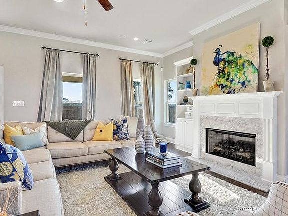 LaCroix B floorplan by Level Homes and was used as the builder's model home. Enter through the inviting front porch into the foyer, which has arched openings into the living and formal dining space! Large living room features a gas fireplace with granite surround and custom built in wall units and has views of the large covered rear porch and backyard. Exposed stained cypress beam separates the living room and kitchen. The gourmet kitchen features painted custom cabinets with under cabinet lighting, 3 cm Fantasy Brown countertops, Thassos polished pixie mosaic tile backsplash, a large center island with pendant lighting, stainless steel appliances including a gas cooktop with single wall oven and built-in microwave, and satin nickel lighting and plumbing fixtures throughout. Large master suite features a spa-like bath, including custom tiled shower with seamless shower door, soaking tub, dual vanity with 3 cm marble countertops, framed mirrors, separate water closet, and huge walk-in closet. Office and additional bedroom and full bathroom on the first level. Beautiful wood stairs lead you upstairs where there are two additional bedrooms with walk-in closets, a spacious loft and a full bath with dual sinks. Patio has gas line for gas grill. Custom touches and finishes throughout including upgraded lighting, flooring, marble counters, stained wood stairs, built in book cases and much more! Other lots/plans available. Sugar Mill Plantation 19th filing is within walking distance