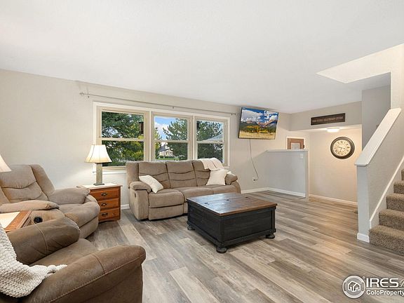 Don't miss this rare opportunity to enjoy country living with the convenience of the city just minutes away. Tucked in 1.68 acres at the edge of Loveland, this beautifully updated 3-bedroom, 2-bathroom two story offers space to breathe, room to grow, and endless potential. Step inside to discover thoughtful updates throughout, a warm and welcoming layout with laminate flooring, updated bathrooms, two living rooms, a dedicated dining room, and a spacious laundry room that adds both function and charm. The huge private deck off of the master creates an outdoor sanctuary ideal for morning coffee or a nightcap! The property shines with tons of mature trees, a cozy firepit area perfect for gatherings under the stars, and plenty of room for horses, chickens, goats, or hobbies. Harvest your haul from the apple and chokecherry trees, grapevines, gooseberry bushes, and rhubarb plants. The home has an attached two car garage as well as two half-circle driveways, making coming and going a breeze, whether you're hauling a trailer, welcoming guests, or parking extra vehicles. The detached 800 sq ft shop, complete with electricity, is ideal for projects, storage, or creative ventures, while an additional outbuilding includes a pool table for fun-filled evenings. With no HOA, the freedom to truly make this property your own is yours. All new windows (2024), new roof on all buildings (2024), newer furnace and A/C, newer interior and exterior paint, and new ceiling fans, tankless water heater (2018), and new smoke detectors! Whether you're seeking a peaceful retreat, space for animals, or simply a place that offers both privacy and connection, this Loveland gem is ready to welcome you home.