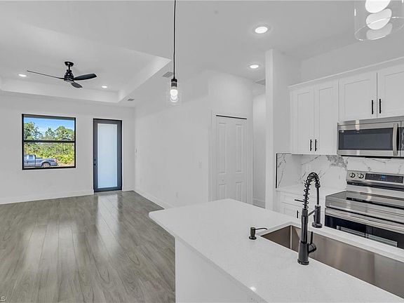 Welcome to your dream home in the heart of Lehigh Acres, the fastest-growing city in Southwest Florida! Located in the highly sought-after 33976 zip code, this modern masterpiece offers unbeatable value at a price well under market, making it an incredible opportunity. This stunning 1,513 sq ft total home features a thoughtfully designed open-concept layout with tile floors throughout, high ceilings, epoxy on garage and patios; as well as stylish modern finishes. The sleek granite countertops, eye-catching backsplash, and stainless steel appliances in the kitchen will impress even the most discerning chef. Each room comes equipped with ceiling fans and chic light fixtures for both comfort and style. Step outside and envision your future pool, as the spacious backyard is perfect for creating your private oasis. The paver driveway leads to an inviting entryway with impact doors and windows, offering added security and peace of mind. The bathrooms are equally impressive, showcasing glass shower doors and premium finishes. With sprinkler systems standard in this model, maintaining your lawn will be a breeze. Situated close to schools, shopping, and dining, this home is perfect for anyone looking to enjoy the best that Lehigh Acres has to offer. Don’t miss this chance to own a brand-new modern home at an unbeatable price!
