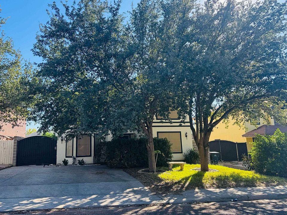 Everything your family needs in one beautiful home! Sspacious 3-bedroom, 2.5-bath features a versatile flex room for a home office, playroom, or guest space. Built by Paisano Homes. Step outside to a stunning, oversized backyard — fully fenced with masonry block fencing for privacy and durability. Enjoy gatherings under the large palapa, surrounded by mature trees that provide shade and charm.