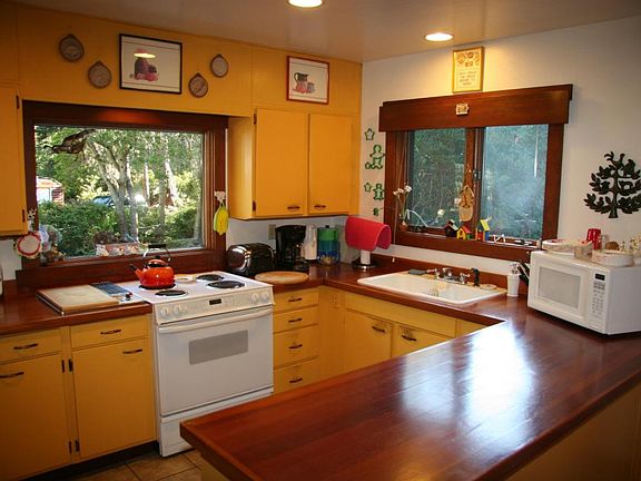 Another Albion Delight. One owner home on almost 3 acres in a great location. Private site and mostly level. Well built with excellent materials. Open floor plan with large bedroom on first floor. Country kitchen including antique woodstove. Two cute cabins on property. Some large redwoods and open areas. Nice landscaping including a lawn. This would make a great family home with room for guests or an excellent vacation retreat.
