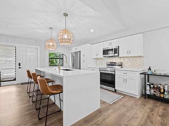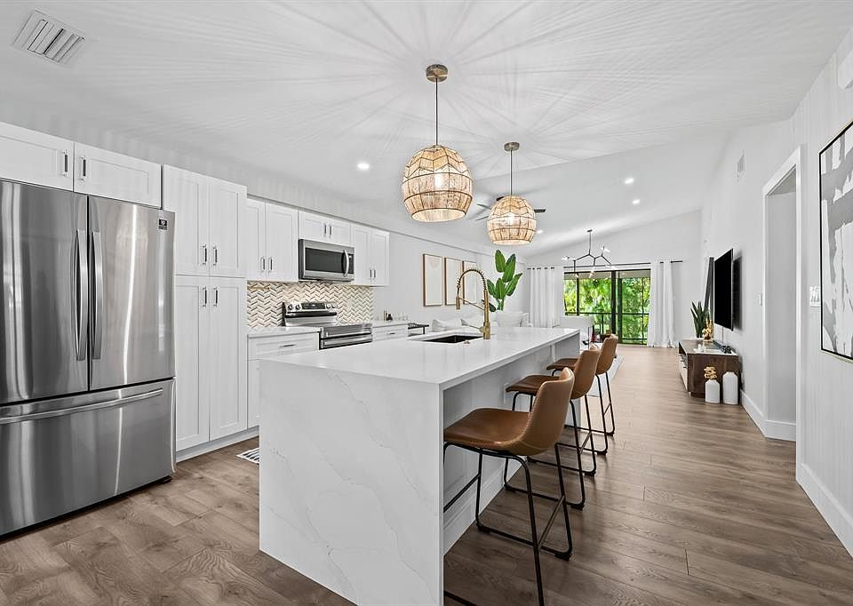 Step into a dream & live the Delray Beach lifestyle in this beautifully renovated, Unfurnished, 3-bed, 2-bath home! SMART HOME! Nest thermostat, smart keypad entry, wifi/smart appliances, & Ring Doorbell. Nestled in a quiet, pet-friendly community w/ pool, clubhouse & pickleball courts! Incredible open-concept layout w/ vaulted ceilings. Enjoy a modern kitchen featuring sleek white cabinets, oversized island, & top-of-the-line SMART stainless steel appliances. New vinyl flooring throughout adds elegance & ease of maintenance. Enjoy golf course views from your patio. Driveway w/ parking for up to 4 cars. Rent includes 2 Basic cable boxes & landscaping. Just steps from Whole Foods, Trader Joe's, Target, The Ave, beaches, & I-95. This is paradise! Available for 12 Month Lease ONLY Association Rules & Regs Attached