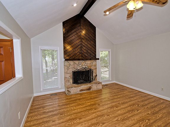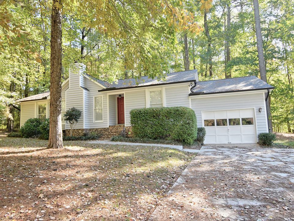 Charming North Raleigh Ranch Home Freshly Painted with 3 bedrooms and 2 full baths on wooded half acre lot on Cul de Sac! Convenient location just off Ray Rd! Laminate Hardwood flooring throughout with LVP in Kitchen and spacious utility room with W/D hookups! No Carpet! Living room with Cathedral ceiling! Granite countertops in Kitchen and Bathrooms! New Light fixtures, front door and much more! Huge deck on back with sliding door from Dining area and back door. 1 Car Garage with entry from backdoor, not connected to interior. No Pets. Fireplace is decorative only and not be used during tenancy.