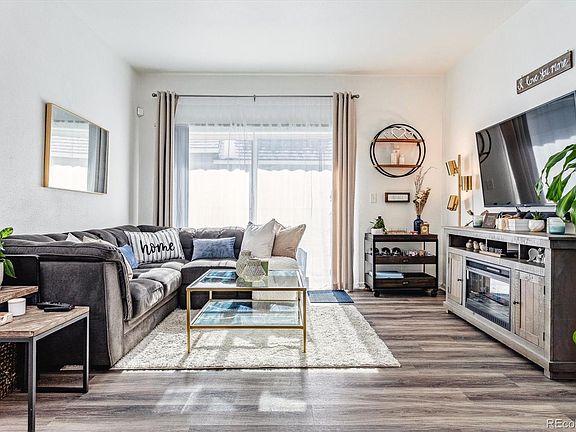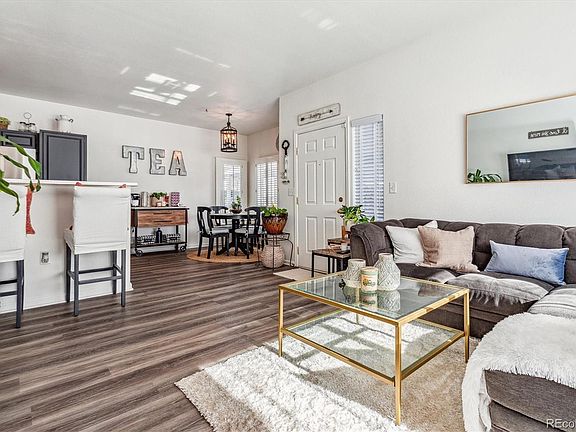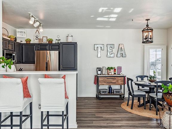 Super cute ground floor unit in popular Canyon Ranch! Carpet and paint are less than 2 years old! Sunny, open floorplan with covered patio off of the living room! Dining area is roomy enough for a sizeable table! The kitchen features tons of recently painted cabinets with satin gold pulls, and all stainless steel appliances! The primary bedroom boasts a private full bath with double vanities and soaking tub! A 2nd full hall bath is easily accessed from the 2nd bedroom - perfect for children or a roommate! The laundry room is conveniently located between the 2 bedrooms! Gorgeous, newer luxury vinyl plank flooring in the living and dining rooms, kitchen, and both bathrooms! A 1 car garage is included with this unit! Wonderful Canyon Ranch pool and clubhouse with gym is just a few minutes walk away, plus enjoy the other amenities in Highlands Ranch (rec centers, pools, tennis courts, etc.)! Great location with easy access to major roads, C470, and just 3 miles to Park Meadows shopping and entertainment! Hiking/biking trails and open space are just steps from the front door! Quiet complex with little to no traffic noise from C470 or County Line! Don't miss this incredible opportunity in Highlands Ranch!