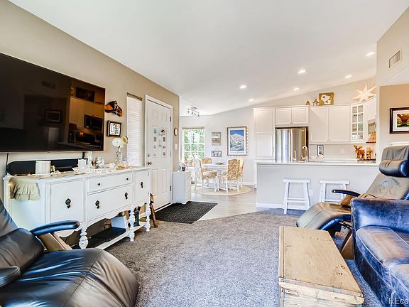 This cozy and beautifully appointed condo in Canyon Ranch is the one you have been waiting for!! 2 bedroom, 2 bath unit offers amazing views of Longs Peak and the front range from the balcony and second bedroom, loads of recent updates, and a single car garage. Vaulted ceilings and large windows throughout fill this pristine home with an abundance of natural light making the living areas bright and comfortable. The remodeled kitchen and breakfast nook (2017) have beautiful trending whites and grays, with newer gray ash engineered flooring and Telluride quartz countertops. Newer windows, sliding door, and Hunter Douglas blinds keep the home quiet and peaceful, adding to heating and cooling efficiency. The spacious Master bedroom features vaulted ceilings, large walk-in closet, and updated ensuite bathroom. The 3 year new Samsung washer and dryer, IKEA shoe organizer, and professionally installed TV wall mount remain with the property. Smoke-free, pet-free home with wonderful neighbors! Bring your pickiest of buyers - this one has it all!!