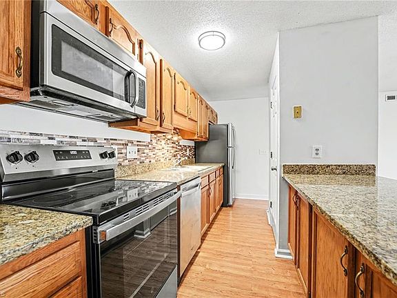 Experience the easy lifestyle of condo living in this 2 bedroom, 2 bathroom unit with fresh paint throughout, new appliances, new carpet in both bedrooms and a new hot water heater. Condo has granite countertops and plenty of counter space and cabinets, an open floor plan between the kitchen with a gas fireplace in the den (currently capped) and laminate flooring running through the den, kitchen and hallway. Primary bedroom has an en-suite bathroom and walk in closet. Convenient to interstates, medical facilities, the airport, Trader Joe's, shopping, restaurants, and multiple parks for outdoor activities. Community pool just steps away.