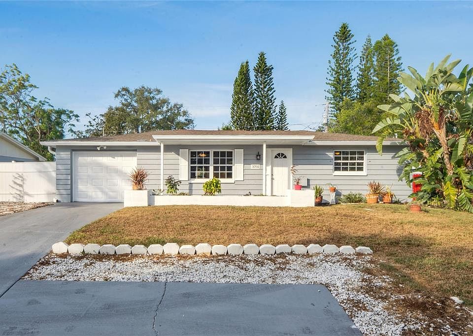 Beautifully Updated Pool Home – True 3 Bedroom, 2 Bath with Garage in Holiday, FL Welcome to this stunningly remodeled true 3-bedroom, 2 full bath home featuring an inground concrete pool, a 1-car garage, and a fully fenced yard—perfect for year-round Florida living. Sitting on high elevation and not requiring flood insurance, this home offers peace of mind along with impressive upgrades throughout. As you enter, you are greeted by a bright open-concept living room that flows seamlessly into the updated kitchen and dinette area. The kitchen features brand-new high-end wood cabinetry with soft-close drawers and doors, Level 3 granite countertops, a spacious center island with a large countertop that accommodates barstool seating, upgraded subway tile, under-cabinet lighting, and new stainless steel GE appliances. The entire home has been updated with luxury vinyl plank flooring, upgraded baseboards, and fresh interior and exterior paint, giving it a clean and modern feel with no carpet anywhere. Behind the main living area is a large flex room that can be used as a family room, formal dining room, office, playroom, or anything you need. The screened rear porch overlooks the newly refinished pool and mature landscaping, creating a relaxing outdoor oasis. The open front porch provides another inviting space for morning coffee or evening relaxation. Both bathrooms have been completely remodeled with beautiful new tub and shower areas. The home features a split bedroom layout for added privacy. The air conditioner and water heater were replaced in 2022, the roof was replaced in 2017, and there is also a storage shed for additional storage. This home is conveniently located near major shopping centers, restaurants, gyms, medical facilities, and U.S. 19 for easy commuting. Holiday also offers great outdoor amenities. Nearby parks include Anclote Gulf Park with its fishing pier and dog area, Key Vista Nature Park with nature trails and wildlife, Anclote River Park with its beach and boat ramp, Eagle Point Park with scenic views, Jasmine Highlands Park and Lake Nash Park for neighborhood recreation, and the highly popular Sunset Beach in Tarpon Springs just a short drive away. This beautifully updated pool home combines comfort, style, high elevation, and convenience in one exceptional property and is truly a must-see.