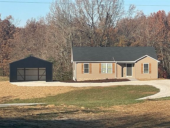 Beautiful new home in a great location with an excellent split bedroom floor plan and an open living/kitchen/dining concept. Interior features include LVP flooring throughout, large eat in kitchen with an island, granite counters in the kitchen and baths, vaulted ceilings in both the living room and master bedroom. Exterior amenities include a front porch, back deck with amazing country views and a 24 X 24 detached garage/shop with electricity and concrete floor. All of this sitting on a 5.4 acre lot with a private setting and mixture of open grassland, wooded land and includes your very own pond. Conveniently located near Bowling Green, GM, the North Industrial Park and I-65.