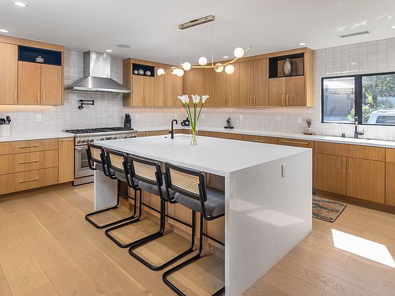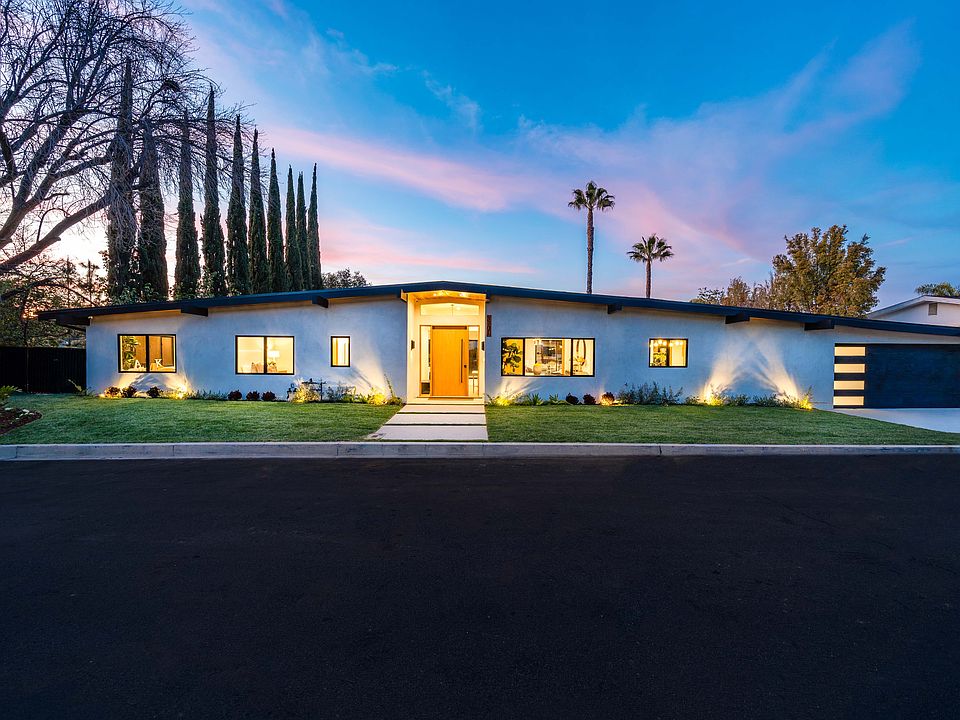 Georges one story home with breathtaking views, 5 beds/4.5 baths, remodeled throughout! Elegant details, designer touches, and luxurious finishes and furniture. Located in a quite neighborhood of Sherman Oaks. Both beautiful living area and family room include wood burning fire places and perfect for hosting guests with great indoor/outdoor flow. In this beautiful house you'll also find dining area, and a custom kitchen equipped with top-of-the-line Thermador appliances, custom cabinetry and a large island for meal preparation and serving. The house has a two car garage, powder room, laundry room and a guest bedroom with in suite bath that can be used as office or an extra bedroom. You'll find the primary suite with private exit to the beautiful yard includes incredible walk-in closet and a lavish bathroom with a large walk in shower, double vanity with make up area and a free standing tub. You will also find additional 3 bedrooms. 2 bedrooms share a jack and Jill bathroom and third is en-suite bedroom with closet. The outdoor area has a large private backyard completed with pool and spa, a large built-in BBQ with seating area and a fire pit area ideal for relaxing with family and friends. The home is also equipped with custom built-ins and plenty of storage. Rental comes fully furnished with elegant and top of the line furniture. Owner pay for Gardener. Tenant responsible for electrical, water, gas and pool.
