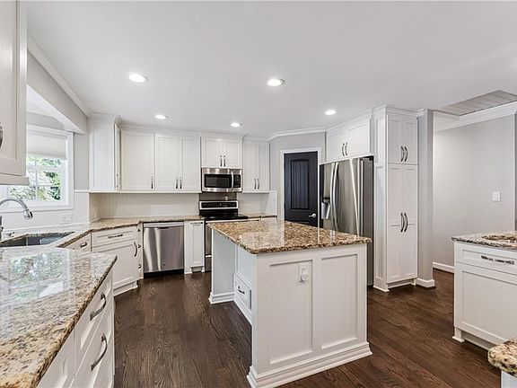 Privately situated retreat on 2.3 acres with a pool in highly coveted East Cobb, served by top-rated schools and located less than 10 miles from Downtown Roswell, Milton, Alpharetta, and Woodstock. New HVAC main unit (2023) & sunroom unit (2021), new siding & exterior paint (2023), new water heater (2022), septic pumped (2025) and refinished hardwood flooring (2025). Gourmet kitchen features custom cabinets, granite countertops, a walk-in pantry, a grand island with pull-out pet bowls, and a breakfast bar complete with a bar sink. Luxurious primary suite offers spa-like bath including custom counter-height double vanity and built-in shelving in the private water closet. Walk-in closet is a dream, with built-in dressers, an 8-tier shoe rack, and ample overhead shelving. Two secondary bedrooms share a Jack & Jill bath w/separate vanities & built-in dresser closets. Lower level includes spacious mudroom includes built-in shelves, bench seating with storage, coat/backpack hooks & USB/power outlets, a bedroom, a full bath, living area, and laundry room with built-in washer/dryer cabinet, utility sink & shelving. Outdoor living includes a 3-tier deck leading to an in-ground fiberglass pool with custom storage. Additional features includes solid wood interior doors, whole-house fan, and garage cabinetry with utility sink. Schedule your showing today!