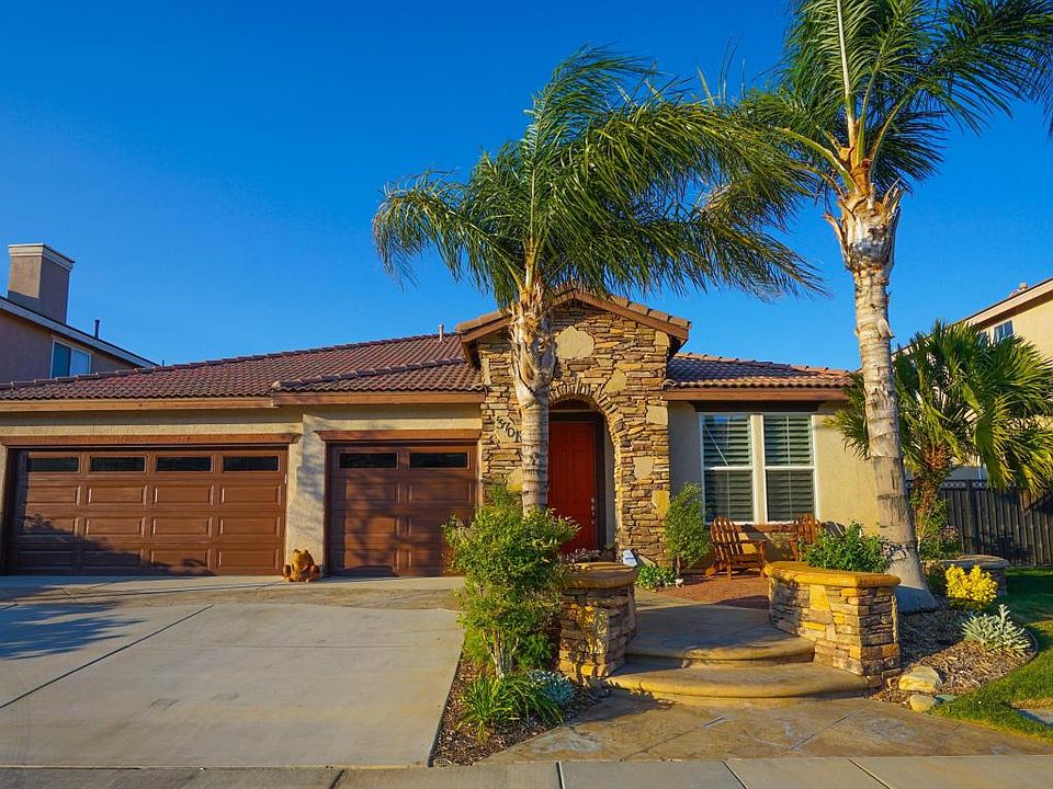 Highly desired SINGLE STORY West Palmdale home. Your future home offers great curb appeal, includes palm trees, stone work, stamped concrete, mood lighting, 3 car garage, RV access, fully landscaped rear yard with so much more, your not far from coffee, you can walk to the market, or hike along the aqueduct, and that's just the exterior. The interior is just as great, easy flow floor plan, open kitchen and family room. It's a must see. Schedule your appointment now.