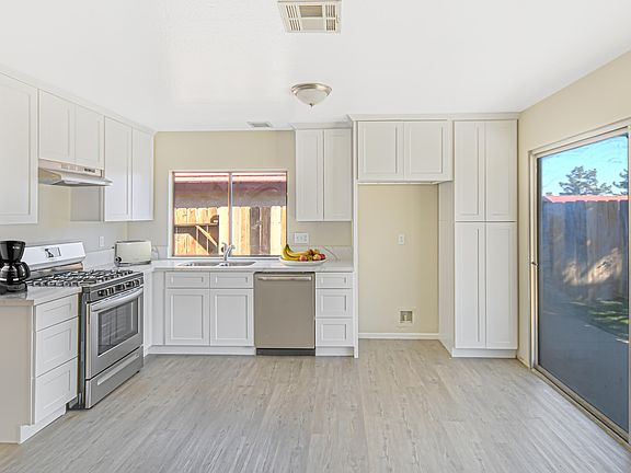 Remarkably Renovated One-Story Home in Palmdale! Located in a desirable area only steps from Joshua Hills Elementary School, this stunning property radiates an exceptionally charming vibe with a freshly painted exterior and new neatly manicured landscaping (all new). Impeccably reimagined for modern lifestyles, the interior welcomes with new neutral paint throughout, beautiful plank flooring, abundant natural light, plush new carpet, chic new light fixtures, and a sizeable living room boasting vaulted ceilings and a brick fireplace. Cook and dine in the completely new kitchen featuring new stainless-steel appliances, gas range, white cabinetry, and sliding glass doors to the outdoor space. Fenced for privacy and easy entertaining, the backyard has a covered patio and a vibrant greenspace. Delight in the well-sized primary bedroom with a deep closet and en suite. Other features: interior laundry area, tons of storage throughout, near shops and dining, and more! Schedule your tour today!