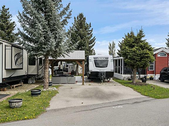 Welcome to Country Lane Estates, a gated and secure seasonal RV community just 15 minutes south of Calgary. Whether you're a snowbird, weekender, or a family seeking a peaceful spring and summer retreat, this highly sought-after community offers the perfect blend of relaxation, recreation, and convenience. This prime lot is ideally situated near the clubhouse, pool, playground, and park—placing you right at the center of all the amenities while still offering a private and serene space to unwind. The property comes fully move-in ready with a 2021 Coachmen Apex 28-foot trailer in pristine condition, providing modern comfort and functionality. The concrete pad ensures clean, low-maintenance outdoor living, while a gazebo offers the perfect shaded space for relaxing or entertaining. A storage shed on the lot adds both convenience and versatility—ideal for storing tools, bikes, or hobby gear. The landscaping has been thoughtfully designed for minimal upkeep, giving you more time to enjoy the season without the stress of maintenance. Full RV hookups are in place. This is a dog-friendly community with riverside walking paths and an off-leash dog park, making it an ideal spot for pet owners. The welcoming atmosphere is further enhanced by a vibrant social calendar, including weekly events and activities that bring residents together. Located just minutes from Okotoks and High River, and with easy highway access to Calgary, this property offers the best of both worlds—peaceful country living with the convenience of nearby city amenities. Whether you're seeking a weekend escape or a full-season getaway, this upgraded lot with trailer and thoughtful outdoor features is ready for you to enjoy from the moment you arrive. Don’t miss this rare opportunity to own a turn-key retreat in one of southern Alberta’s most desirable seasonal RV communities.