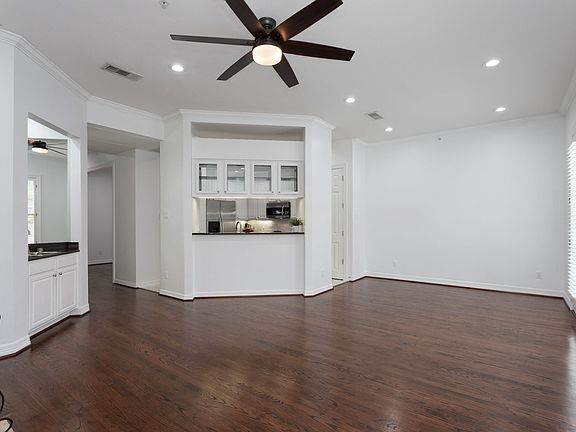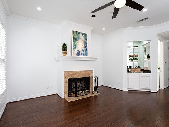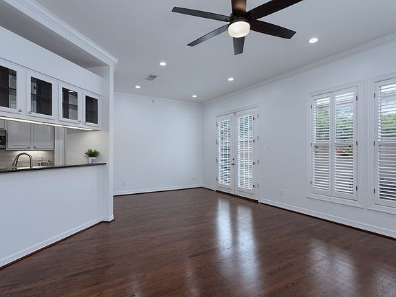 Hrdwds throughout living area, study-office, high ceilings, floor to ceiling windows, spacious kitchen with granite counters & SS appliances & dining area opens to private patio. This updated 3 story unit features 2 master suites on separate floors each with large attached sitting rooms, in-suite baths and walk-in closets. 3rd flr suite has balcony overlooking downtown, Turtle Creek and walking distance to Turtle Creek & Katy Trails. Wood burning fireplace, plantation shutters, Also features a 12x10 temp controlled storage unit and 2 assigned parking spaces in secure gated garage. Buyer to verify measurements & schools.