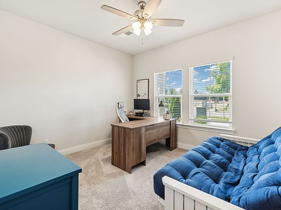 Nestled in a tranquil neighborhood with scenic water views, this contemporary 3-bedroom, 2-bathroom home, just 2 years old, epitomizes modern comfort and style. A highlight is the custom-designed closet in the master bedroom, offering both functionality and elegance. Outside, an additional patio space invites outdoor relaxation or entertaining under the open sky. The kitchen, equipped with a double oven, large island, and pantry, is a culinary dream, perfect for both everyday cooking and hosting gatherings. Residents can also enjoy leisurely walks along the neighborhood's walking path, soaking in the peaceful surroundings. With its blend of modern amenities, stunning views, and thoughtful design, this home presents an ideal opportunity for those seeking both comfort and a picturesque setting.
