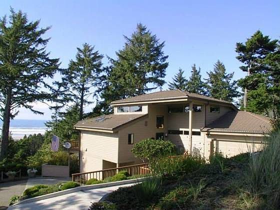 Beautiful, private custom home with wonderful ocean & lake views. Designed by Architect Miyakawa with vaulted ceilings, wood beams, skylights, great open floor plan, sauna, loft, wonderful large kitchen with granite counters and lots of pantry area. Large lot adjoining the common area with a park like setting, beautiful trees and beach access is nearby.