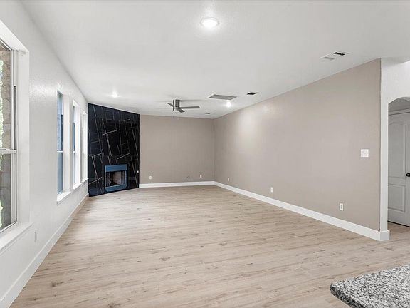 Inviting fireplaceStylish backsplashUpdated fixturesShaded backyardFresh interior paintRecessed lightingNew flooring