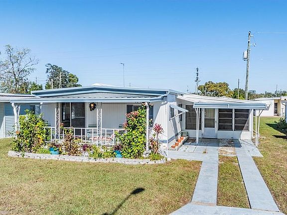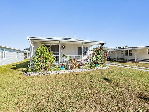 Escape the Snow and Settle in for Sunshine—Welcome to Betmar Acres! Are you ready to trade winter chills for Florida sunshine? Whether you're looking for a seasonal escape or your forever home, this well maintained 2-bedroom, 2-bath double-wide in Betmar Acres offers comfort, convenience, and community in a sought-after 55+ neighborhood—where you OWN the land! Move-in Ready and Fully Furnished Step right into your new life with this fully furnished home, including an EZ-GO golf cart with nearly new batteries (2 year old)—perfect for cruising the community! Spacious Living Inside and Out Enter through the large Florida room with laundry space in the back and a door leading to the generous backyard with a storage shed. The front kitchen is bright and functional, opening up to a large dining area and comfortable living room. Enjoy your morning coffee or evening breeze on the full-length front porch accessible from the sliding glass doors. Relaxing Bedrooms & Updated Baths The primary bedroom at the rear of the home offers plenty of space to unwind, complete with a private vanity and a walk-in shower. The hall bathroom features modern updates including a new vanity, toilet, and linen closet for added storage. Peace of Mind and Practical Updates New roof on the Florida room installed prior to the hurricane. Low annual park fee of just $435. Enjoy All That Betmar Acres Has This active 55+ community is packed with amenities, including: ? Scenic walking trails over ponds and bridges ? Two swimming pools & two hot tubs ? Tennis and pickleball courts ...and so much more!