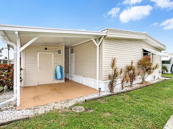 Welcome home! Beautifully Remodeled 3-Bedroom, 2-Bath Home in a Desirable Gated Community. This thoughtfully remodeled property offers a stunning kitchen features white shaker cabinets, a brand-new countertop, a convenient pantry, and a cozy coffee nook, perfect for your morning routine. The dining area includes a built-in buffet and opens to a spacious, light-filled living room, creating an ideal space for gatherings and relaxation. The large main bedroom offers a generous walk-in closet and a beautifully updated en-suite bathroom with a new vanity, stylish tile shower, and glass doors. The guest bedrooms provide plenty of closet space, and the guest bath has also been tastefully remodeled with fresh finishes, new vanity and tile shower. Step outside to your private patio, perfect for entertaining or unwinding in the fresh air. A screened porch offers additional outdoor enjoyment year-round. Two storage sheds provide plenty of extra space for all your needs. This move-in-ready home is ready for you to make it your own! Active Adult community with plenty of activities, Heated and Chilled Pools, Pickleball Court, Shuffleboard, Billiards, Dances and so much more. Close to the local beaches, dining and shopping.