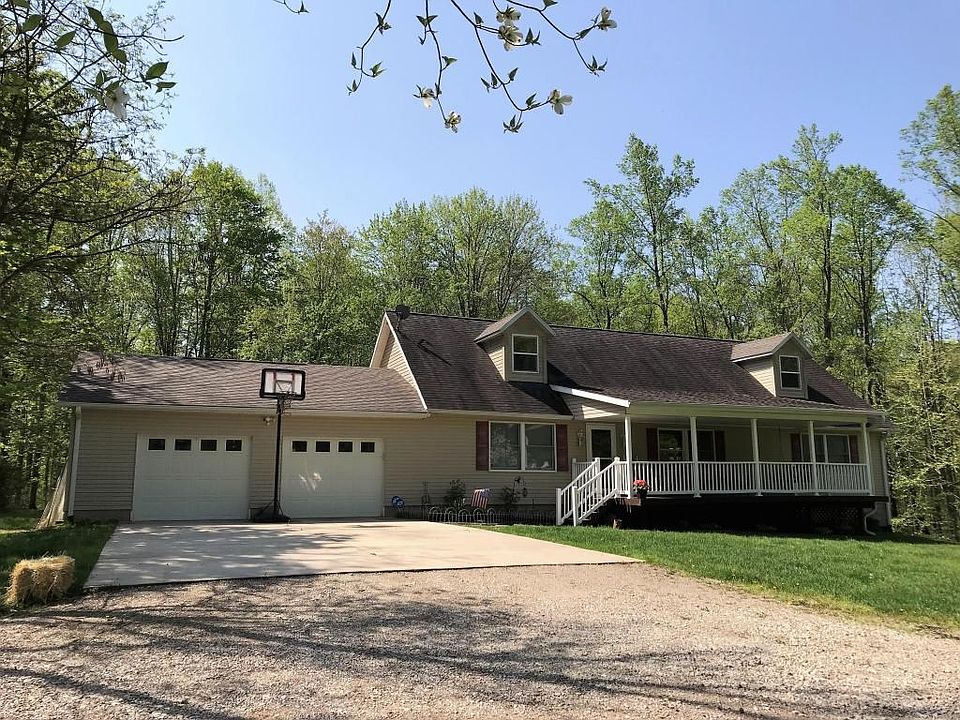 Nature will beckon you to stay at this beautifully maintained cape cod home situated on over 15 private wooded acres! No shortage of space here with 4 bedrooms, 2.5 baths, applianced kitchen, dining and living rooms... AND a full finished walk-out basement with bar and family/rec room. Attached 2-car garage, large rear deck to enjoy the outdoors, storage shed, invisible fence, and small dog kennel are just a few of the many amenities you will enjoy here!