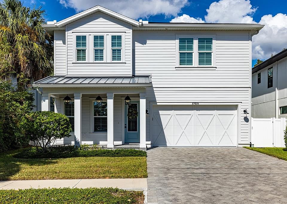 Beautiful Milana Custom Home Built in 2020! Step onto the charming front porch and into a welcoming foyer that opens to a spacious living room featuring rich hardwood floors throughout. The open-concept kitchen is a chef’s dream, complete with a gas range, pot filler, and a large island with seating—perfect for casual dining or entertaining. A cozy dining nook and open family room overlook the back patio and private, fenced backyard.Upstairs, a versatile loft area leads to the luxurious primary suite and three additional bedrooms. The primary suite offers a generous walk-in closet, dual vanities, a standing shower, and a freestanding soaking tub for ultimate relaxation. Enjoy outdoor living year-round on the covered lanai with a built-in fireplace and entertainment setup. The backyard is fully enclosed with a 6-foot white PVC fence, providing both privacy and charm. Additional features include 8-foot doors throughout and impact-resistant windows. Centrally located and just minutes from all that South Tampa has to offer—this home blends quality craftsmanship, comfort, and convenience in one perfect package.