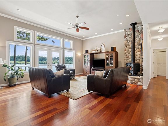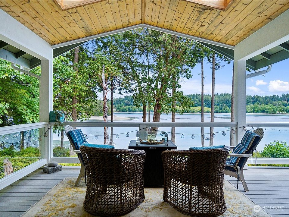 Welcome to your private waterfront retreat in the gated community of Driftwood Pt. This captivating home on 1.2 acres offers an idyllic get-a-way. Enjoy stunning panoramic views of the water from almost every room. The open layout enhances the airy ambiance, with expansive windows inviting natural light and showcasing the picturesque scenery. This property boasts direct beach access, with protected deep-water moorage, perfect for enjoying water sports or simply relaxing by the water's edge. Embrace the essence of PNW waterfront living in this beautifully appointed home, where every day feels like a vacation.