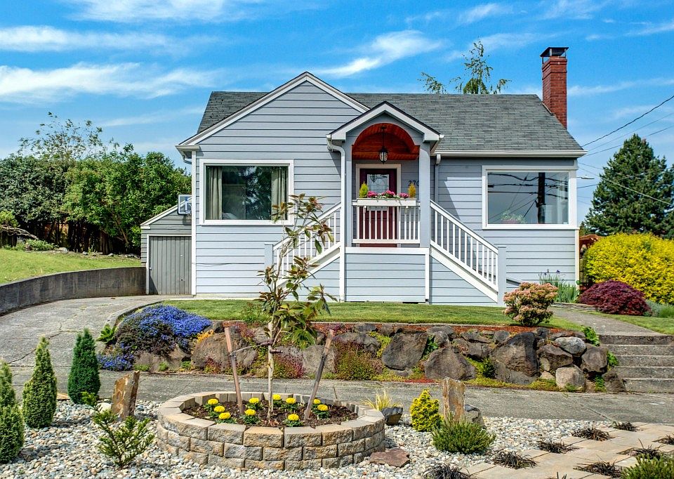 Perched atop the Belvidere neighborhood in West Seattle, this Cape Cod home offers great territorial, city and mountain views. Step into the living room with hardwood floors, wood fireplace, and large picture window. Updated kitchen with granite slab countertops, stainless steel appliances, and tile floors. Fully finished basement with family room, guest bathroom, and bonus room that could be a 3rd bedroom. Wonderfully landscaped lot is home to strawberries, rainier cherry, apple and asian pear trees. Fully-fenced backyard with low-profile deck gets almost full sun. All this + a one-car detached garage, new siding and exterior paint, and all appliances stay!