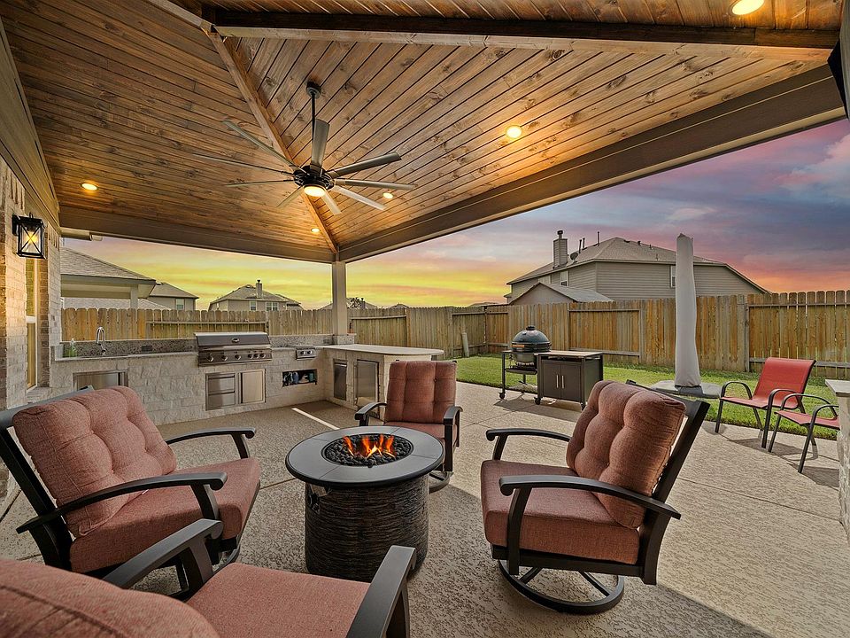 Welcome to this immaculate 4-bedroom, 2.5-bath home that seamlessly blends elegance, functionality and thoughtful design. Designed for comfort and entertaining, it features an open floor plan, engineered hardwood floors, a dedicated home office, and a spacious upstairs flex room, perfect for a game room, playroom or second living area. The oversized 2-car garage includes epoxy-coated floors, suspended shelving from ceiling along with decked attic storage above. Enjoy a stunning custom outdoor kitchen with a 40" grill, sink, double side burners, refrigerator, and double pull out trash bins—perfect for entertaining! Additional highlights include 6" gutters on all sides, and a custom Elfa closet in the primary suite and kitchen pantry. Community perks: pools, splash pads, trails, tennis, and easy access to Grand Parkway. This home offers a rare combination of comfort, convenience and luxury.