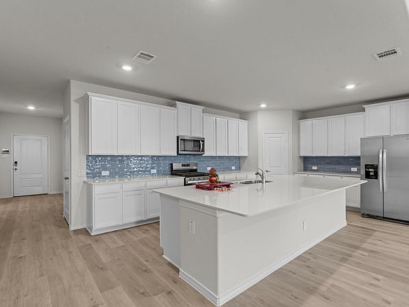 This lovely 4 bed 3 full bath home comes with washer, dryer and refrigerator! Enjoy cooking in this gourmet kitchen with gas range and expansive island that opens to the family dining and living areas. Upstairs you will find a large game room and three additional bedrooms. At the end of a long day, come home to relax in the private backyard that backs to a green space and it also sides to a green space. Come live in High Country at Silverado You will love it!
