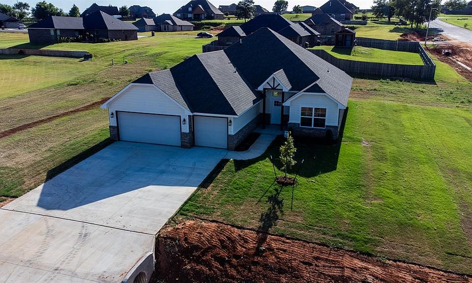 NEW HOME on a 1/2 acre corner homesite. ZERO DOWN PAYMENT PROGRAMS are available. Ask for details. Beautiful 4 bedroom, 2.5 bath, 3 car garage home on a 0.5 acre corner homesite. Gorgeous open floor plan with large kitchen island, built-in gas cooktop, true vent hood, and more. The floor plan is split with 3 beds (or 2+ a study) on one side of the home, and the primary suite on the other. The laundry room connects through the primary closet for convenience. Shop buildings are allowed in The Ridge with HOA approval. Newcastle address. Newcastle water. Blanchard Schools. OEC Fiber Internet is available. The builder provides a 1 year Builder's Warranty and a 10 yr RWC transferable Structural Warranty. Schedule your private showing today!
