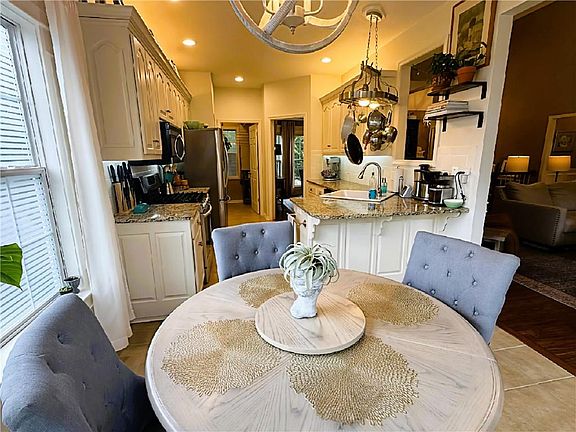 The kitchen boasts granite countertops, a gas stove, and a peaceful sitting area, ideal for everyday living. The master suite is a true retreat, complete with a sitting room, large windows, a luxurious master bath, a walk-in closet, and French doors.